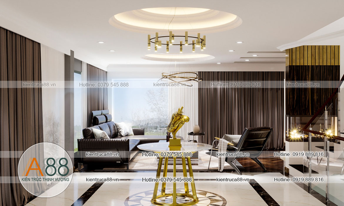 Mỗi không gian sử dụng bên trong ngôi nhà đều được thiết kế có nhiều ánh sáng tự nhiên, thoáng mát và ấm áp phù hợp với nhu cầu, sở thích của các thành viên trong gia đình. Công trình thiết kế nội thất phòng khách là sự hợp tác thành công giữa chủ đầu tư và Công ty cổ phần Kiến trúc A88, trong quá trình làm việc các Kiến trúc sư được gia chủ hỗ trợ và trao đổi nhiệt tình giải quyết mọi vướng mắc, yêu cầu của chủ đầu tư. Thành quả mang lại là công trình thiết kế được chủ đầu tư và mọi người trong gia đình rất hài lòng.